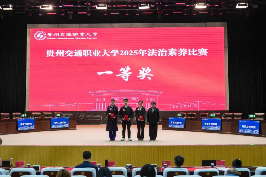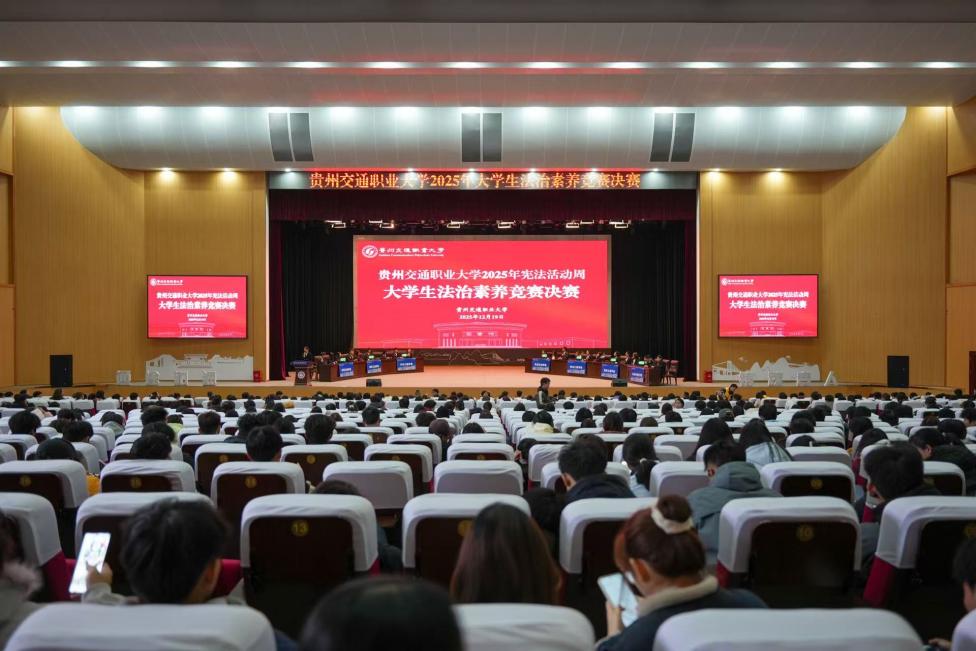 12月19日下午,贵州交通职业大学“宪法宣传周”系列活动之法治素养竞赛决赛在学校礼堂成功举行。本次比赛由马克思主义学院主办,作为学校2025年宪法宣传周的重要环节,旨在通过知识竞答形式深入推进法治教育,提升学生法治素养。
