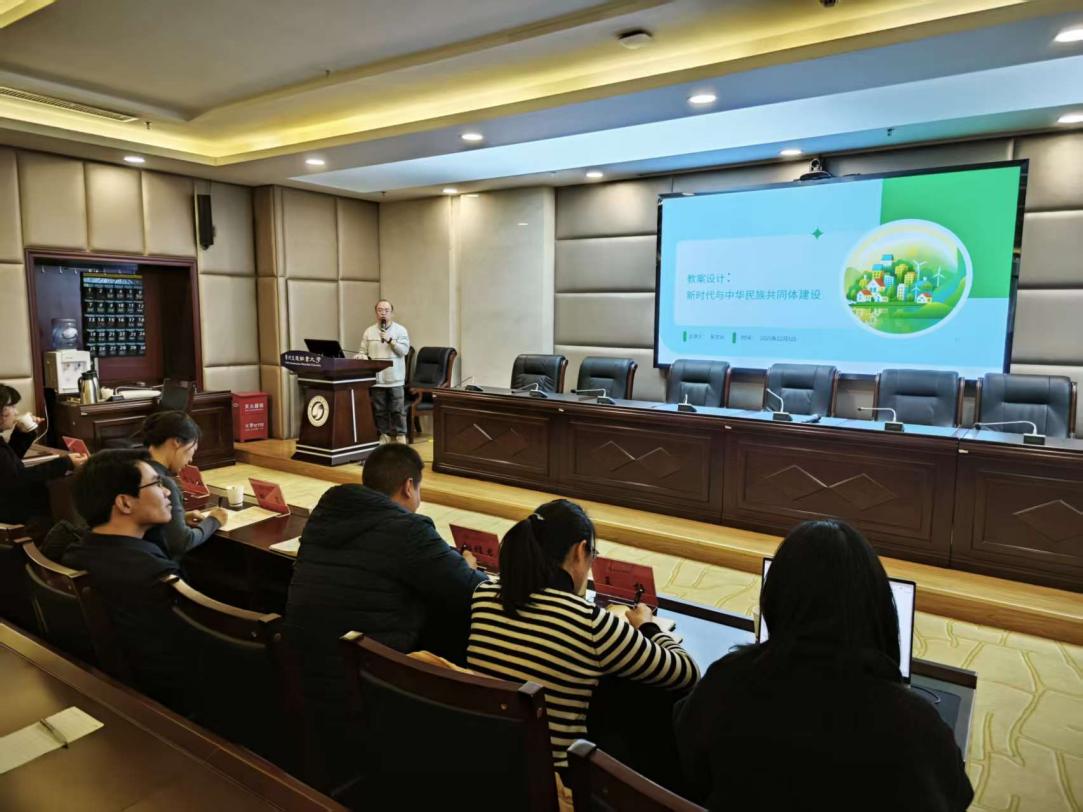本次教研活动聚焦教学创新与课堂实效,分为教学展示与集中研讨两个环节。在展示环节中,熊钱富老师组织学生进行了一场别开生面的“模拟法庭”实践教学。通过角色扮演与案例辩论,将理论知识与法治实践相结合,生动展示了思政课教学中的情境设计与学生参与模式。吴文兵老师以“新时代与中华民族共同体建设”为主题进行专题讲授。课程紧扣时代命题,理论阐述深入,案例材料丰富,展现了扎实的理论功底与鲜明的价值引领。
