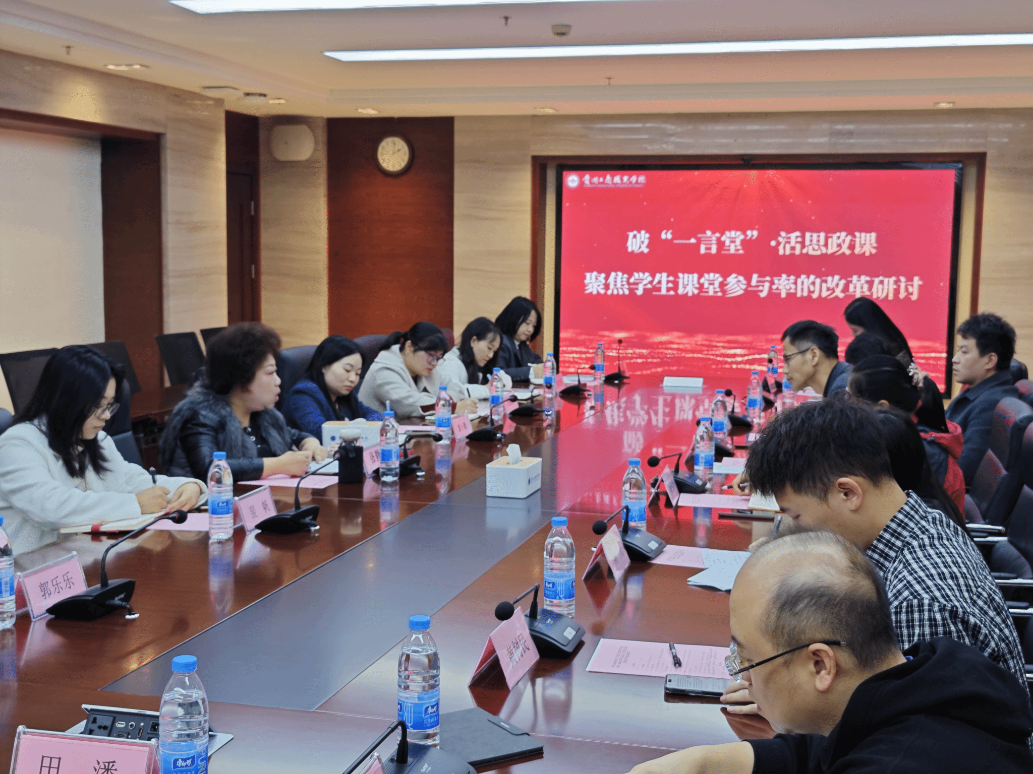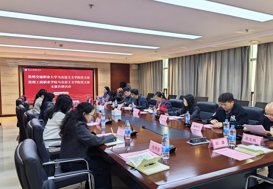 2025年10月31日下午,贵州交通职业大学马克思主义学院理论教研室党支部与贵州工商职业学院马克思主义学院党支部在贵州工商职业学院自强楼908会议室联合举办“破‘一言堂’·活思政课:聚焦学生课堂参与率的改革研讨”党建共建活动。活动围绕“如何有效提升学生课堂参与率”展开深入交流,两院领导及教师代表参会。