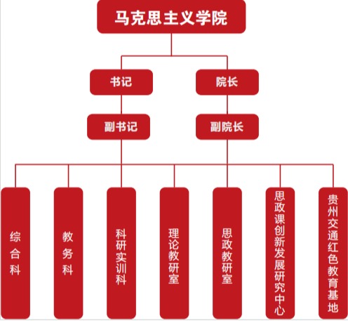 马克思主义学院是贵州交通职业大学独立设置的思想政治理论课教学科研组织二级机构。学院坚持以习近平新时代中国特色社会主义思想为指导,全面贯彻党的教育方针,落实立德树人根本任务。承担全校学生的思想政治理论课教学任务,统一管理思想政治理论课教师,持续深化思想政治理论课教学改革创新,努力培养德智体美劳全面发展的社会主义建设者和接班人。